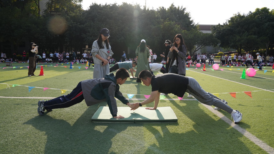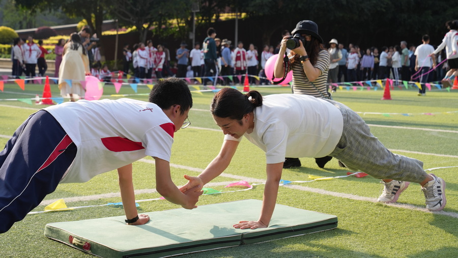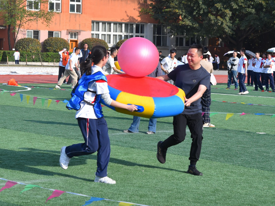 春意盎然的四月天,操场上热闹非凡,一年一度的趣味运动会如约而至。2026届、2027届全体学生和家长代表互动与合作,营造了积极健康的校园运动氛围。