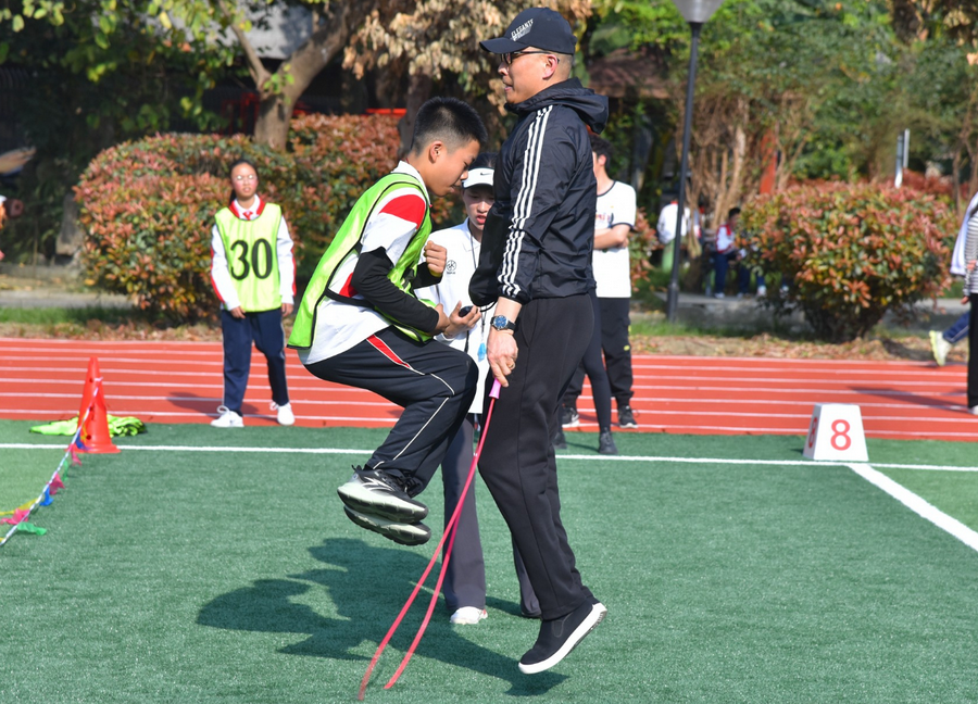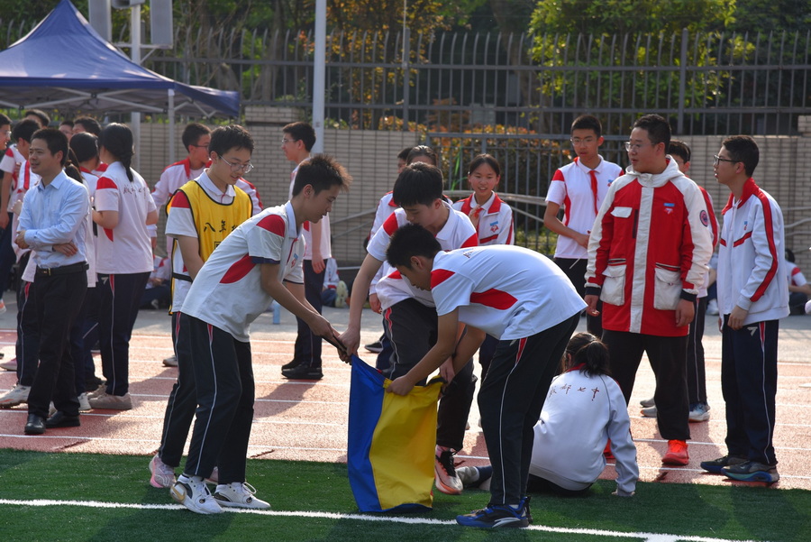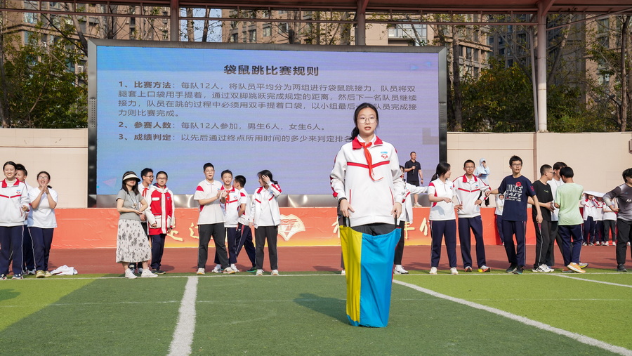 初二年级的趣味运动会项目同样丰富有趣,袋鼠跳、车轮滚滚、鼓动人心等项目让同学们尽情释放青春活力。