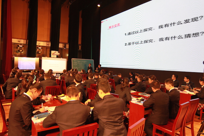七年级数学组晏学渊老师向来着全国各地的专家、老师们展示了一堂精彩的数学翻转课,这一堂课不仅高效地实现了教学目标,而且充分地运用了现代教育技术,受到了与会者的一致好评。