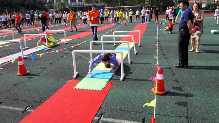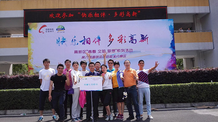 “快乐相伴,多彩高新”高新区“青春文明 梦想”第八届趣味运动会桂溪分赛于5月9日在锦晖小学举行。我校高度重视,由邱兴华副校长带队,郑刚、张力生、李中萍、胡国典等十余名老师积极参与。老师们在“勇往直前”、“马到成功”等若干个团体趣味活动中团结协作、奋勇拼搏,最终以优异的成绩从参与此次活动的23支队伍中脱颖而出,获得决赛通关杯。