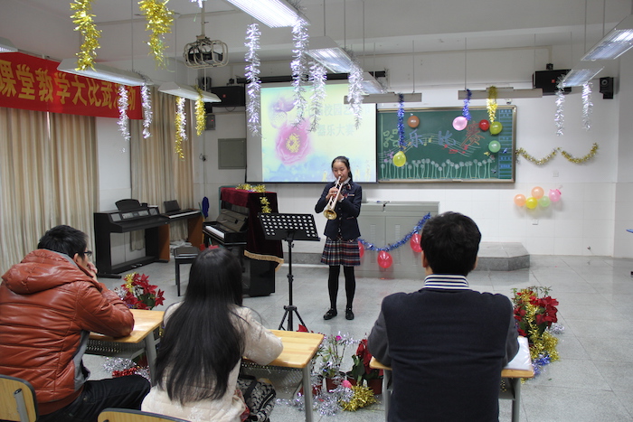 小小的音乐教室并不大,却也是那一番艺术的天地;短短的两个小时并不长,倒也演绎千百载文化。他们,我校的音乐才子们各显神通,给在场的所有人以美的享受。