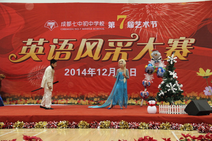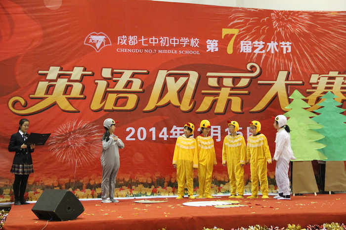 12月15日下午,初2016届的全体同学在体育馆里举行了隆重的英语风采大赛,场馆里自始至终都是一片热情的海洋。在精心排练之后,各个班终于要登台表演了!衣着华丽的演员们个个脸上都洋溢着兴奋激动的笑容,又为这场空前盛宴增添一抹亮丽。