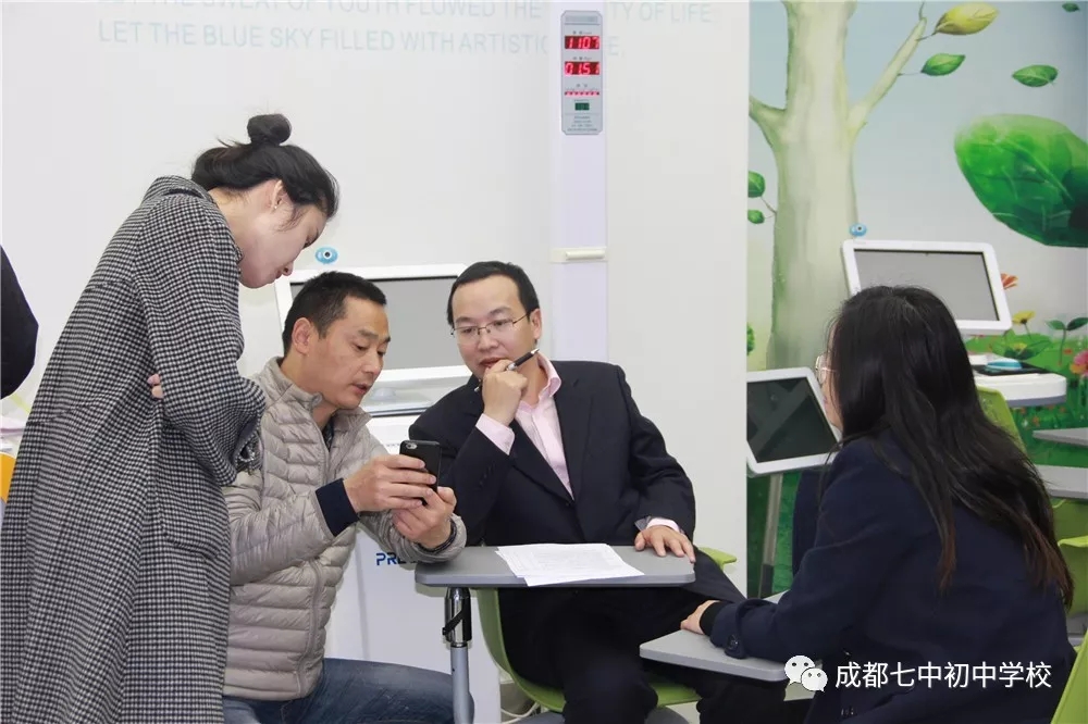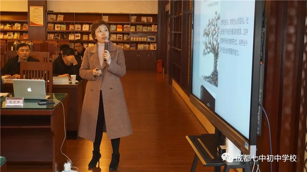 发言首先链接了2018科技创新发展:移动支付、探月工程、人工智能、量子通讯等,大约在2045年,机器人的智力将达到人的智力。面对不可预知的未来,我们的学生该怎么办?七中初中明确提出:面对未来,教育应坚持立德树人培育学生的核心素养。