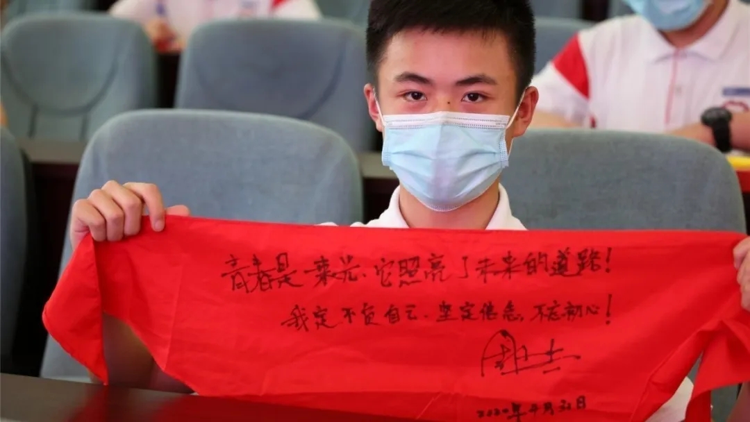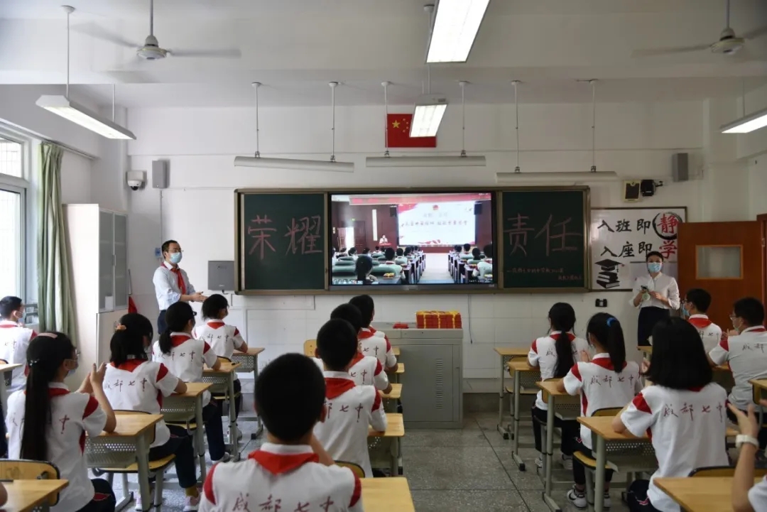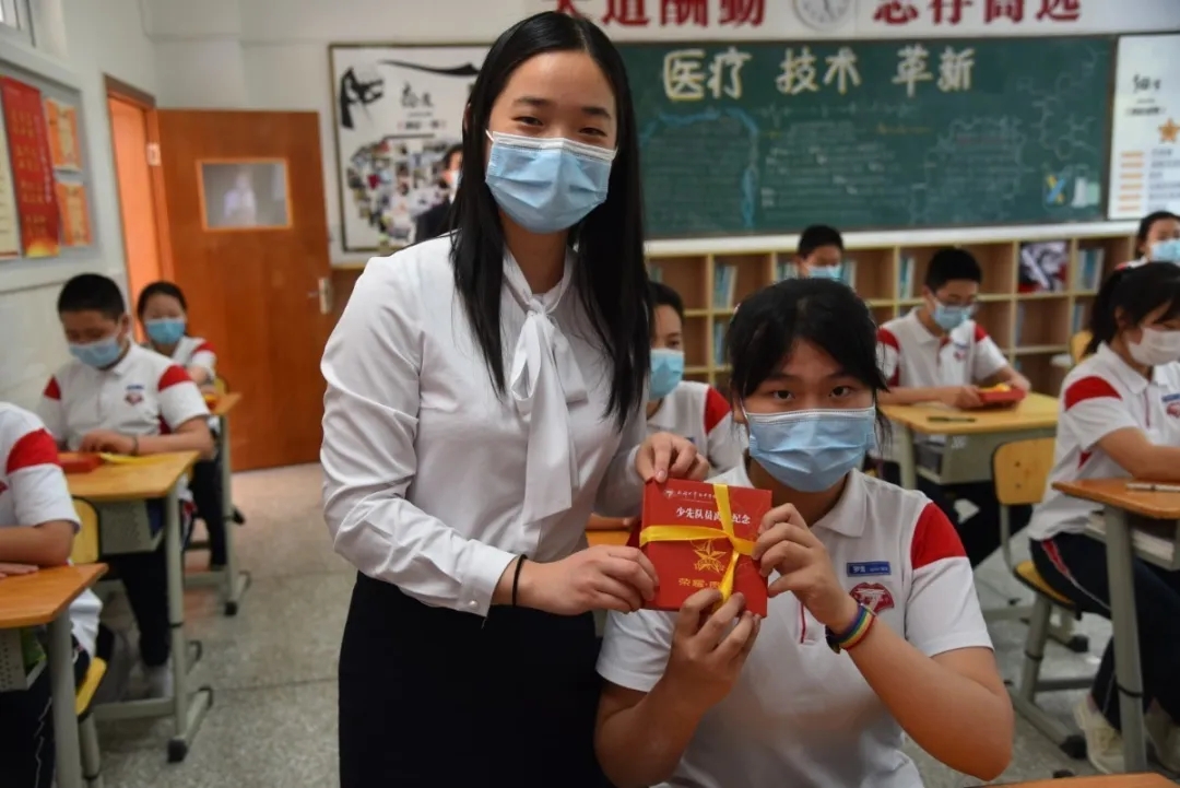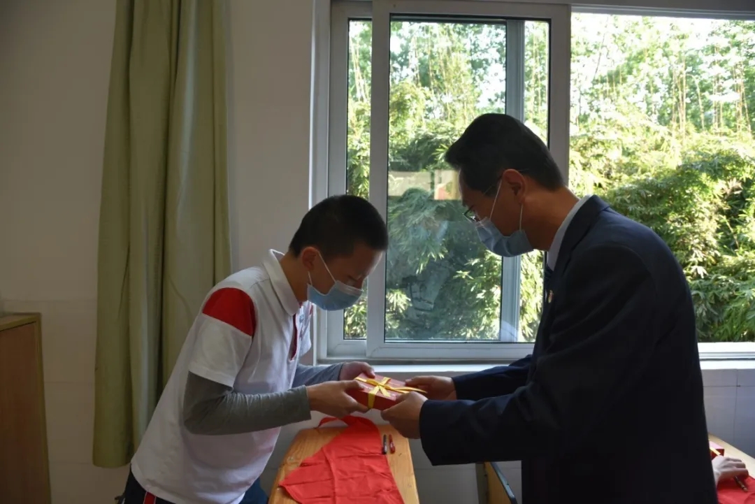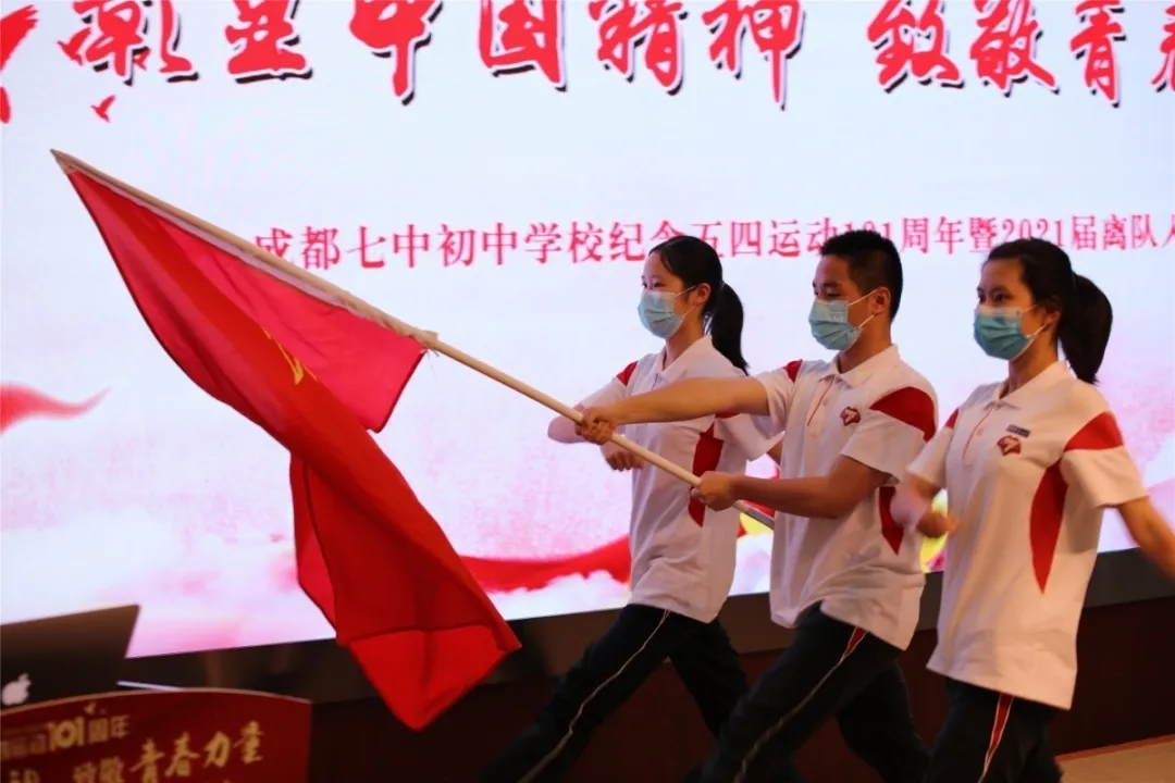 4月30日下午,星空在线登录m星空(中国)隆重举行“纪念五四运动101周年暨2021届离队入团仪式”。疫情期间,活动采取线上直播观看、线下表彰优秀相结合的特殊方式进行,来共同纪念这一重要时刻,学校团委书记何鑫老师主持仪式。来自本部校区和锦城校区的39名2021届优秀同学将在这里离队入团,佩戴上熠熠闪光的团徽,迎接属于他们的荣耀时刻。同时,2021届的全体同学都将褪去少先队员的身份,从少年成长为真正的青年。