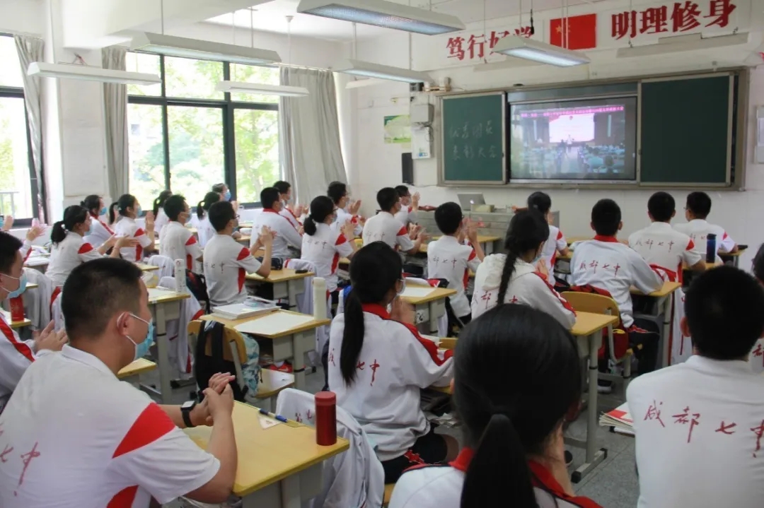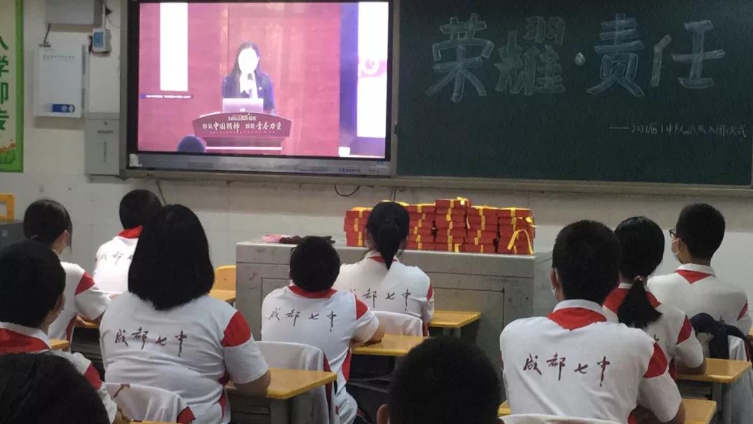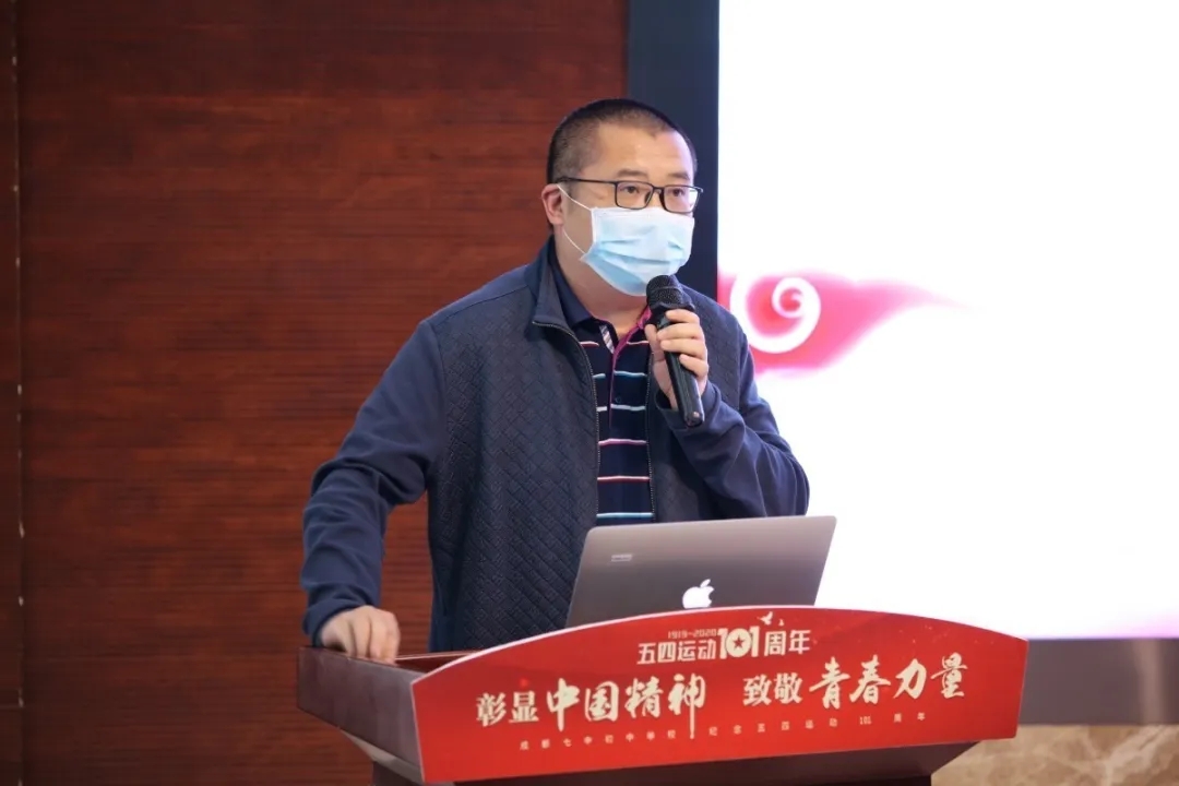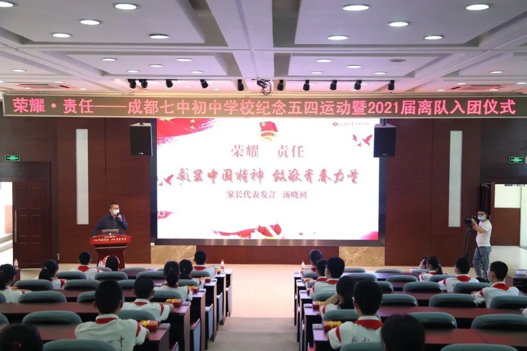 家是最温暖的港湾,父母是孩子最大的庇护伞。在这重大的日子里,七初学子的父母们也将一同见证孩子们的成长。2021届家长代表、成都商报社副总编辑汤晓初先生代表所有家长寄语。汤晓初先生给同学们分享了青年记者们在得知疫情发生后,第一时间踊跃报名、主动要求到抗击疫情第一线参与报道的事迹。汤先生认为年轻人们承担起了他们的责任,没有虚度自己的青春,用巨大的勇气让自己的青春获得了意义。他诚挚的希望孩子们在美好的青春年华里,去奋斗、去创造,以青春的力量为民族、为国家、为人民作出更大的贡献!