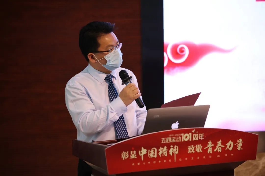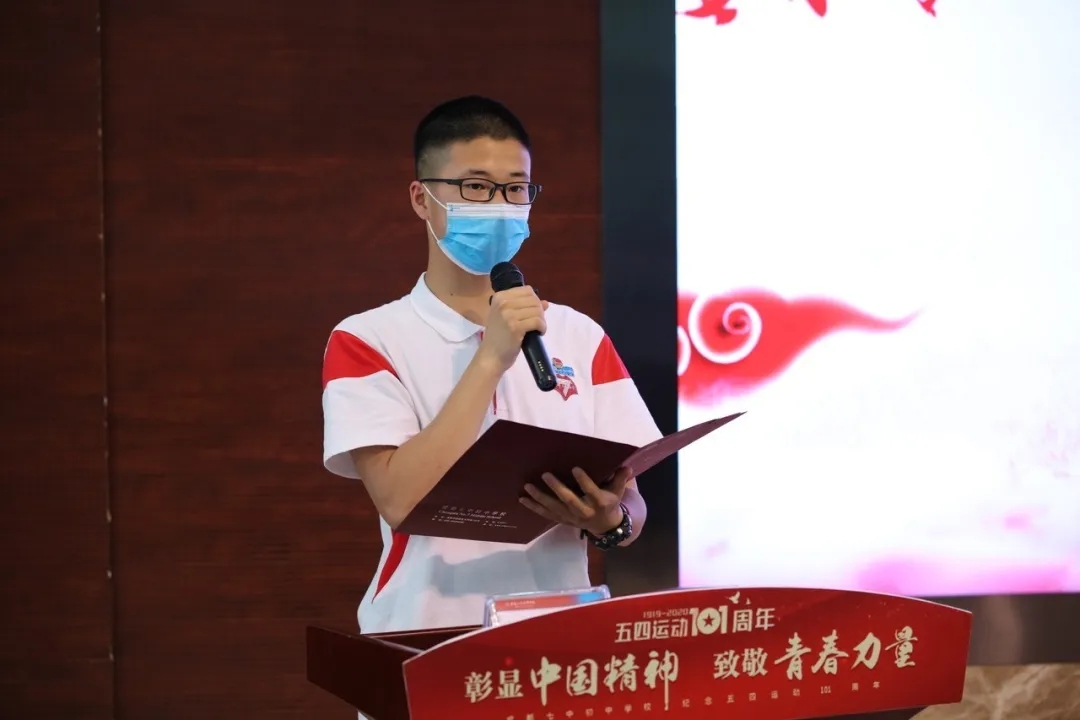 4月30日中午,在庄严的国歌声中,星空在线登录m星空(中国)“五四表彰暨2020届第三批新团员入团宣誓仪式”拉开了帷幕。学校团委书记何鑫老师主持了本次活动。本次活动继续采用线上直播观看、线下表彰优秀相结合的方式进行,表彰了两校区的高新区十佳团员、十佳团组织、7个“五四”红旗团支部、14名优秀团干部和36名优秀团员,同时举行了17名新团员的入团仪式。