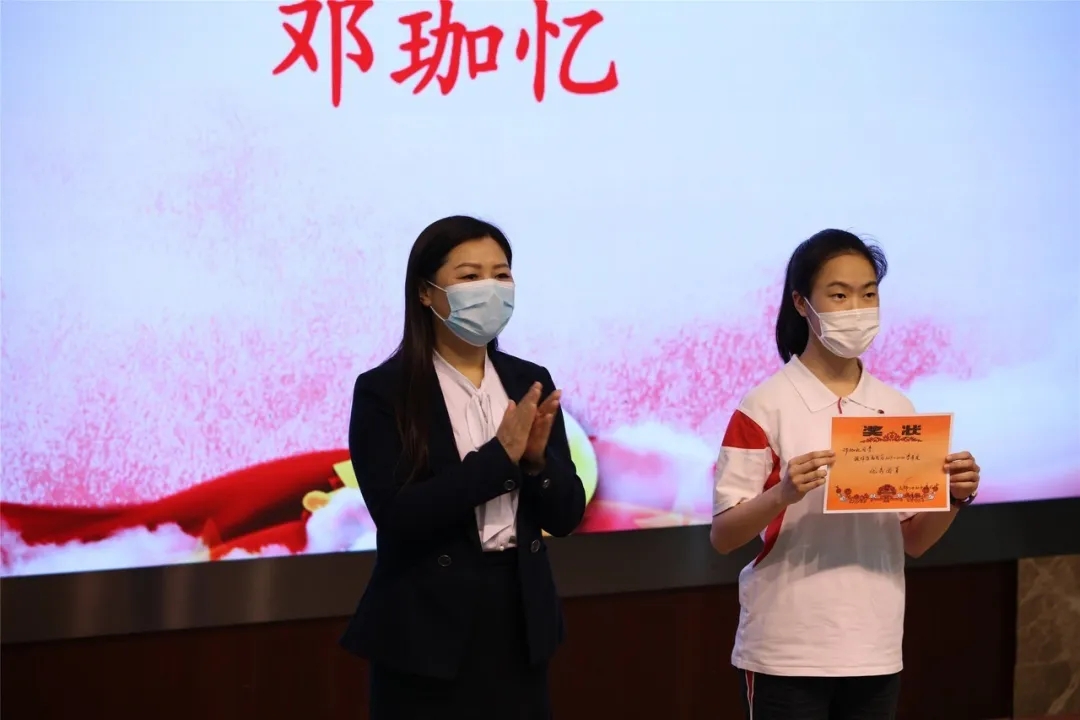 党总支书记、校长李笑非老师为2019—2020学年度高新区十佳团员邓珈忆同学颁奖
