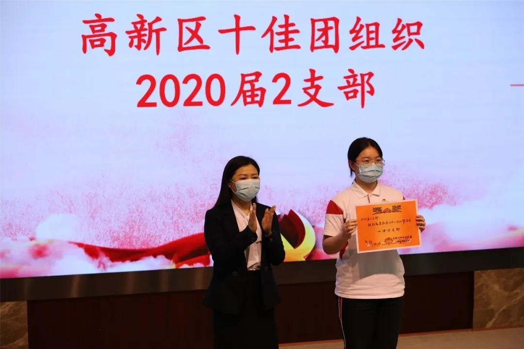 学校党总支书记、校长李笑非老师为2019—2020学年度高新区十佳共青团组织2020届2支部颁奖
