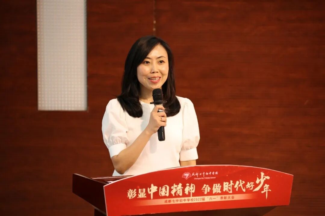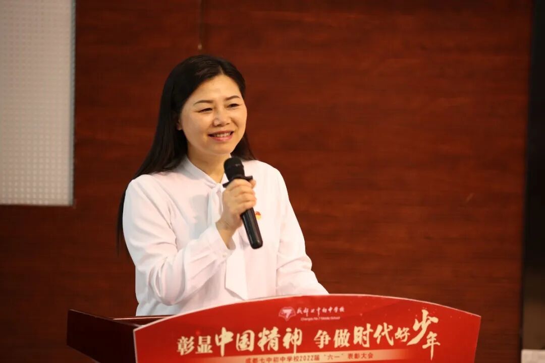 家是成长的开始、是幸福的源泉,家长代表张娇女士代表所有七年级的爸爸妈妈们做了深情的演讲,表达了对孩子成长的祝福。她表示,我们因缘相聚七初,因爱相伴成长,相信在七初精神的的滋养下,孩子们定能乘风破浪,到达梦想的远方。