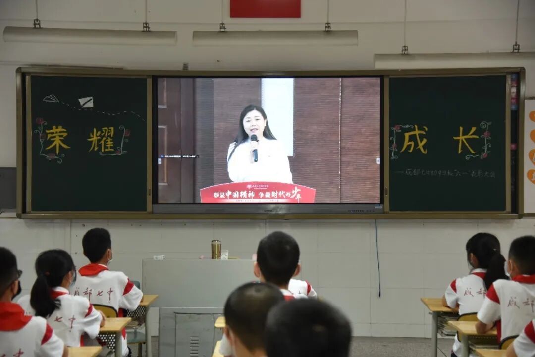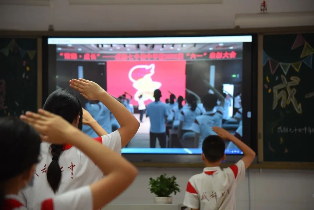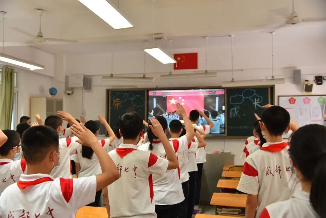 党总支书记、校长李笑非老师为七年级同学们送上问候和祝福,点赞同学们进入七初学习一年来付出的努力与收获的成长。李校长对同学们提出殷切期望。一是生命要为祖国澎湃;抗击疫情让我们看到无数深藏的爱国之心,同学们要用行动去诠释爱国精神,在最平凡之处,贡献不平凡的力量。二是成长需以德行灌溉;要以善良待他人,以感恩伴父母,以行动敬老师,以青春报祖国,要成为谦恭有礼,良言善行的七初少年。三是梦想必用奋斗唱响;作为七初最年轻的“后浪”,要在浪起潮涌的地方,仰望星空,脚踏实地,为自己的梦想,为民族的复兴,凝聚更加磅礴的力量。