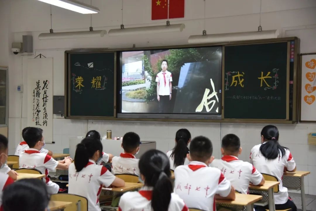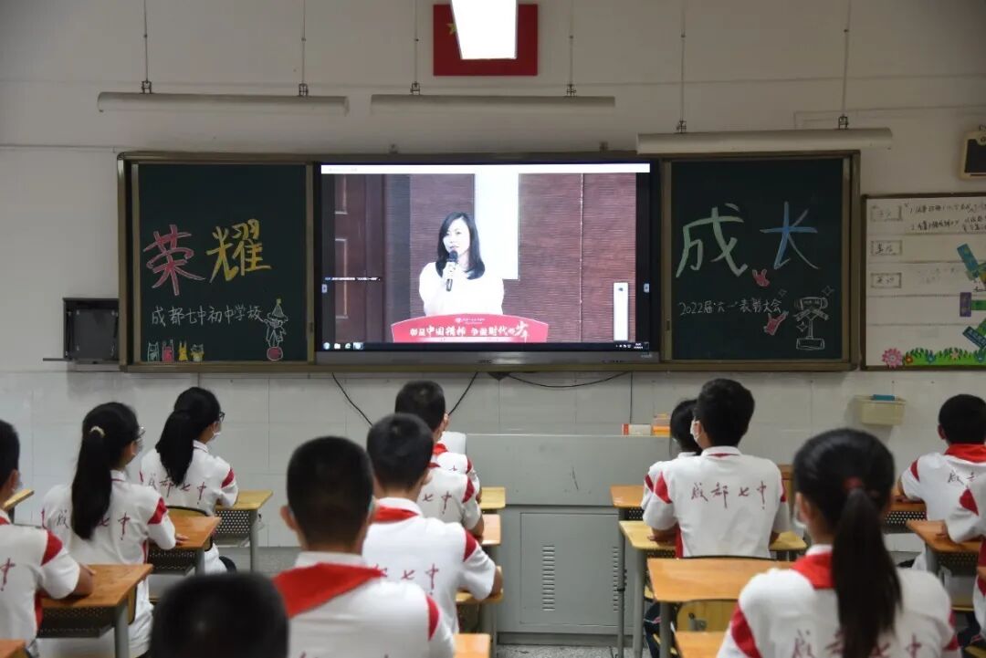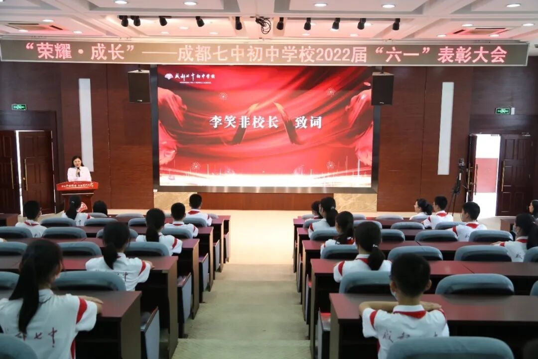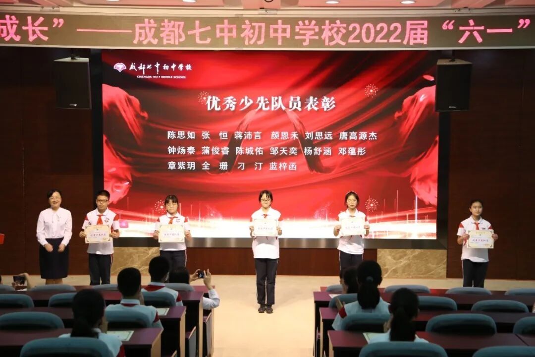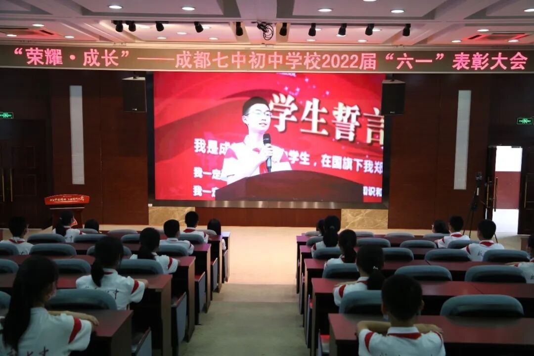 优秀少先队员代表、本部2022届4中队刘思远同学代表受表彰的优秀少先队员发言。谈到一年里的校园生活,刘思远同学激动的说道,“课堂上专注的目光、操场上拼搏的模样、舞台上精彩纷呈的表演,让我们深刻体会到了‘你有多大能耐,七初给你多大舞台’的真切关怀。”刘思远表示,七初的一年,是成长的一年、是进取的一年、更是拼搏的一年,在七初的带领下,我们明白了青春的真正意义,在接下来的岁月里,我们将继续以梦为马,不负青春韶华。