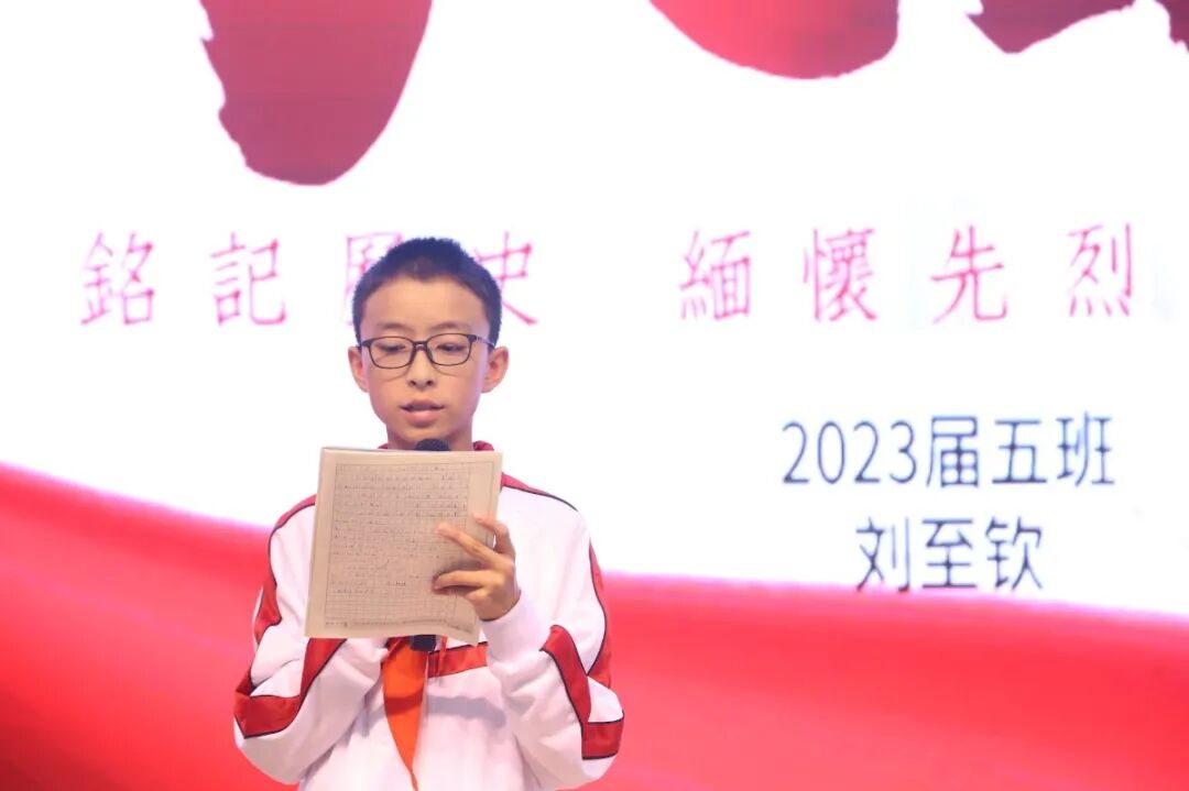 5号选手、2023届5班刘至钦同学为我们讲述了抗战岁月里的艰难历程,号召大家学习抗战精神,争做时代好少年。