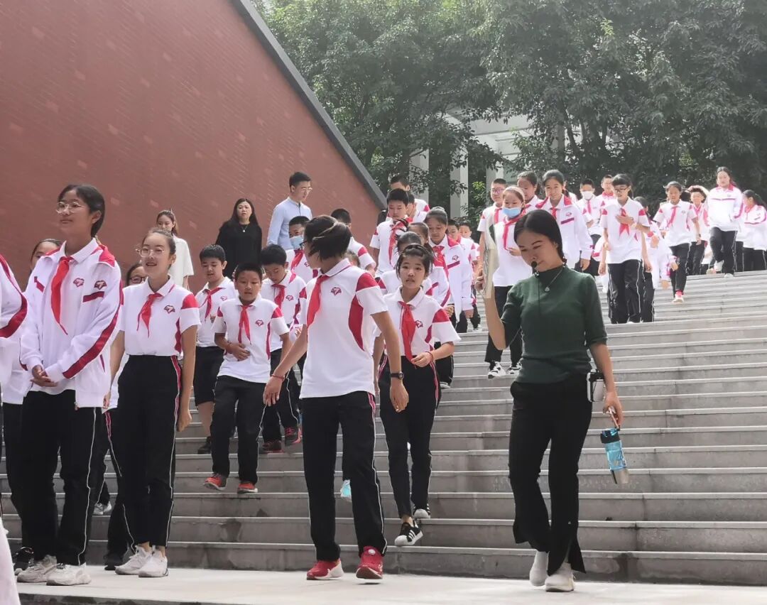 上午10点整,当防空袭预先警报在校园上空响起,根据学校安全领导小组演练方案要求,七年级各班在班主任和科任教师组织带领下迅速按两路纵队集合,依据指定路线,有序疏散到指定场地避险。