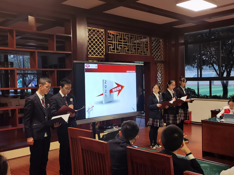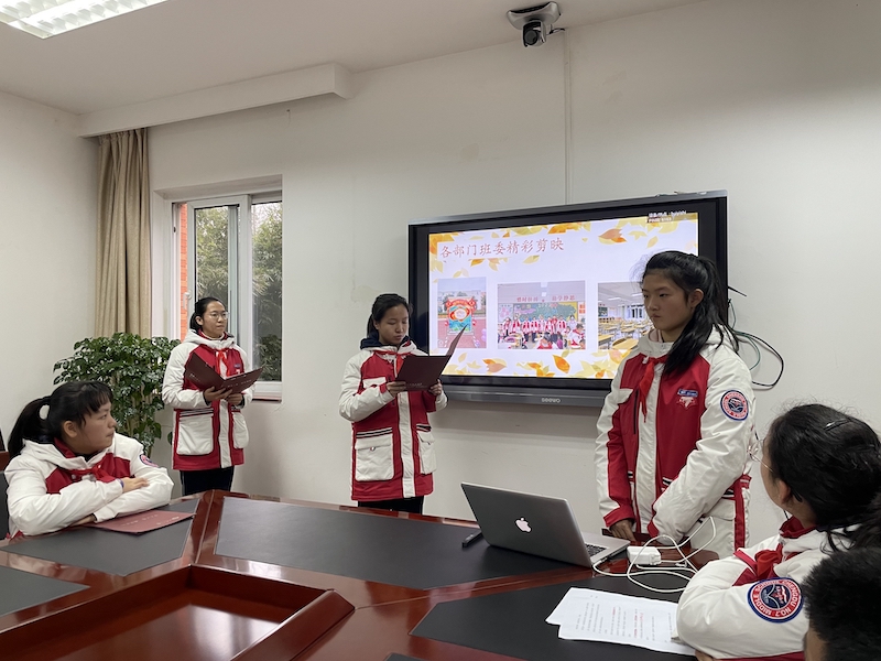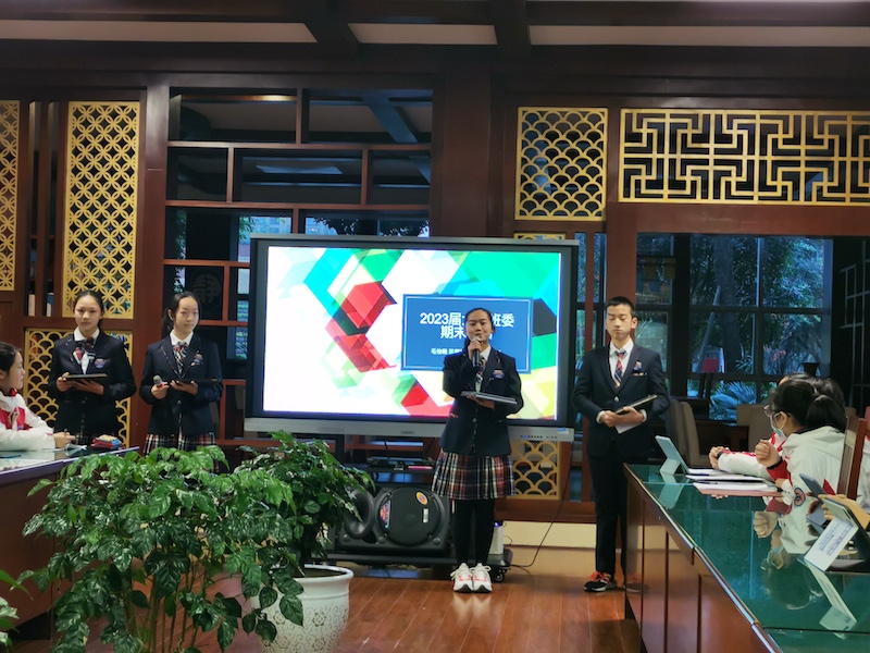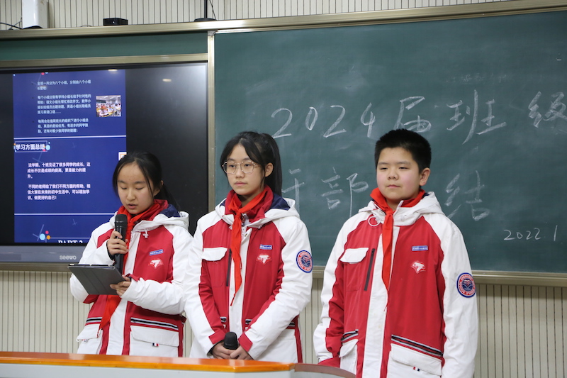 副校长孙余老师高度肯定了各班同学精彩的班委总结,也请同学们互相分享了倾听后的感悟与收获,最后还鼓励班委同学以身示范,带领同学们一起为营造整洁、文明、向上的班级氛围而努力。