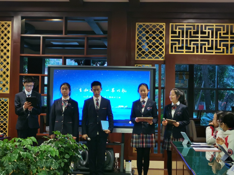2023届1班班委以“培养自主管理能力”为主题,自信大方地向大家分享了班级自习课上“零交流、零下位、零收发、零抬头”的四项标准,细致地讲解了班级活动中班干部的自主管理能力培养。