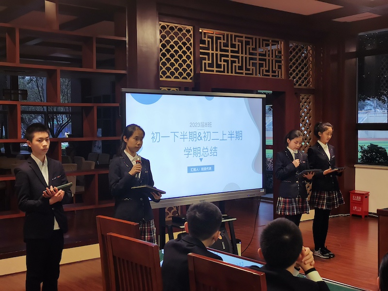 优美诗意的文辞,大方得体的谈吐……2023届4班的班委十分重视同学综合素质的培养,在汇报中鼓励同学们做全面发展的七初学子。