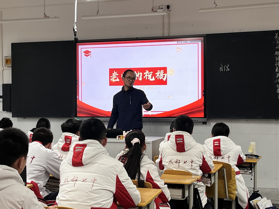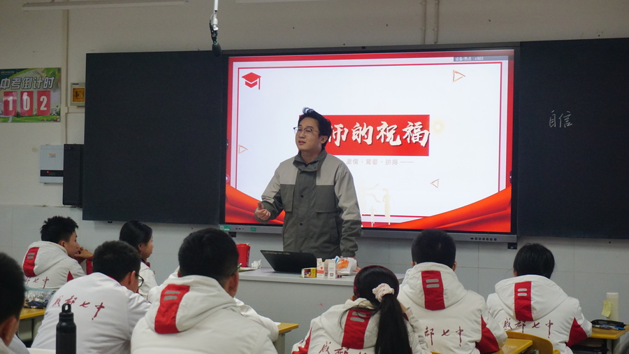 师长赠言,春风化雨。学校党委书记李笑非携全体行政、初三任课老师到班为学生加油鼓劲。“七初没有超人,只有超人的意志”,老师们掷地有声的话语响彻学生们的耳畔。有他们的支持,七初学子们定能更加坚定地走好每一步。