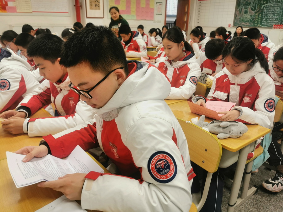 家长寄语,纸短情长。同学们激动地拆开家长写给自己的信,在笔锋与墨水间深刻体会到了爸爸妈妈对自己的鼓励与期望。信中的字字句句,封缄着父母藏在心底炙热的关爱。热泪盈眶中,父亲的手掌刻满岁月的沟壑,为我们铺就成长之路;感动欣喜中,母亲的泪光凝成星辰,指引我们穿越迷雾,这让同学们明白,在拼搏中考的路上,不论前方有何艰难险阻,只要回头,家长永远在你身后。