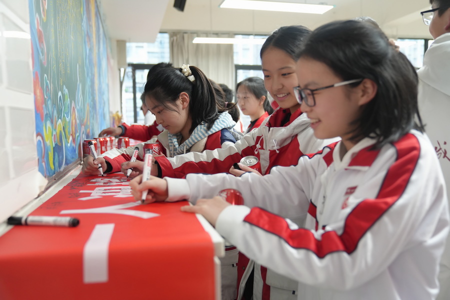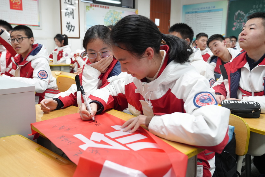 鲜红横幅,心愿小卡,不同形式,传达同样炽热的梦想。学子们执笔如握戈,在上面郑重签下姓名,书写心愿。墨迹未干的笔画里,有少年书写的力道,书写在上面的不再是简单的字符,而是刻进时光的青春勋章。