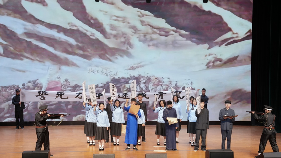 滔滔乌斯浑江水,见证八位巾帼英雄的壮烈史诗。3班的同学们带领我们穿越时空,在悲壮的演绎中,感受中华女儿用生命书写的永恒赞歌!