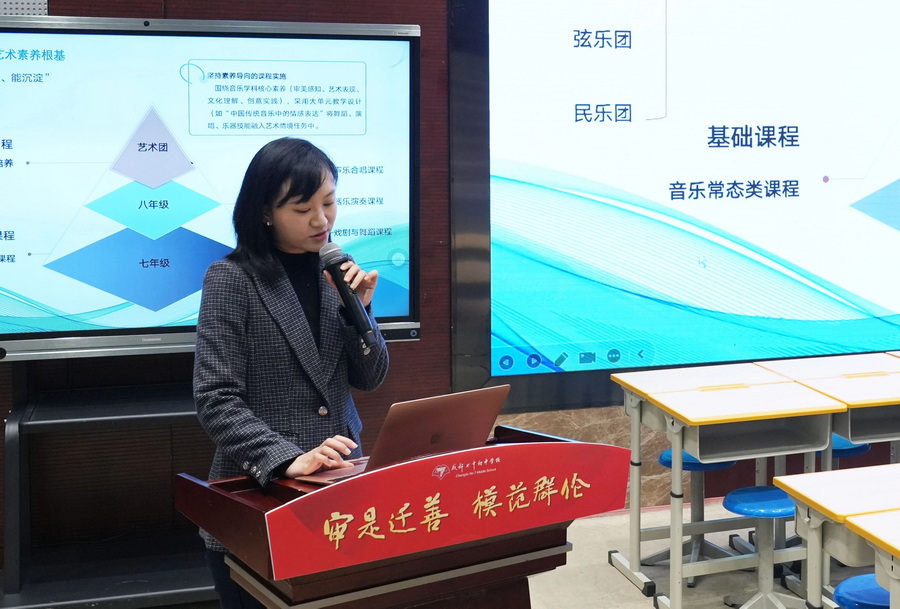 星空在线登录m星空(中国)音乐备课组组长马依婷以《艺路同行 筑梦成团——星空在线登录m星空(中国)艺术团建设》为题,分享了校艺术团建设的实践成果。学校艺术团通过多元融合、梯队递进、内外联动等实施路径,凭借完善的体系架构、丰富的实践平台和优质的师资力量,使学校艺术团在各类展演中成效凸显,为学生艺术素养提升和展示提供沃土。